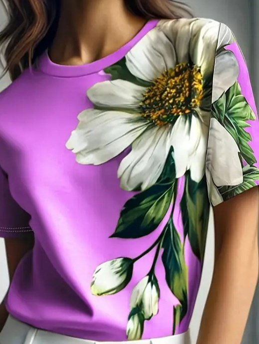 Kadın Kısa Kollu Bisiklet Yaka çiçek Baskılı Süprem Bluz
